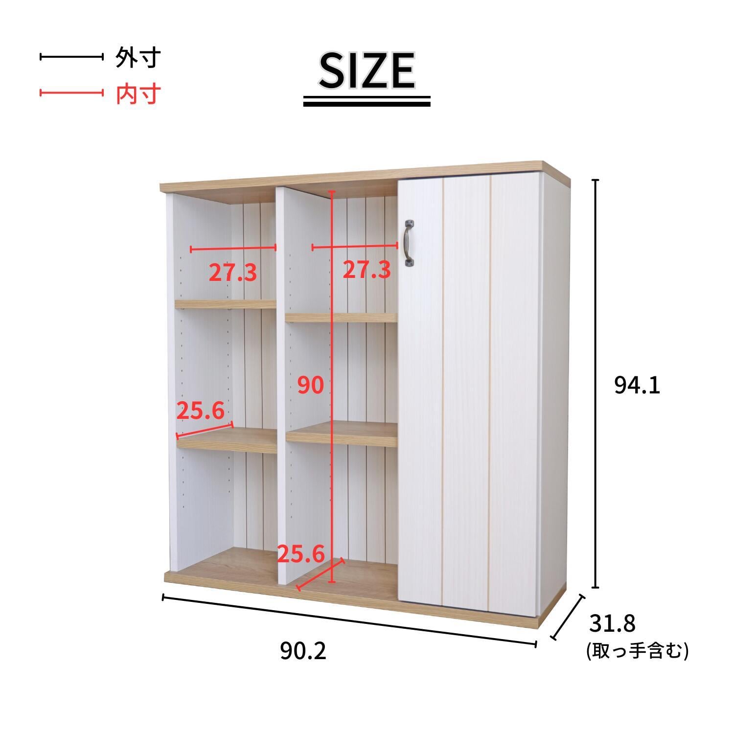 フレンチカントリー風の幅90cmの扉付き本棚です。