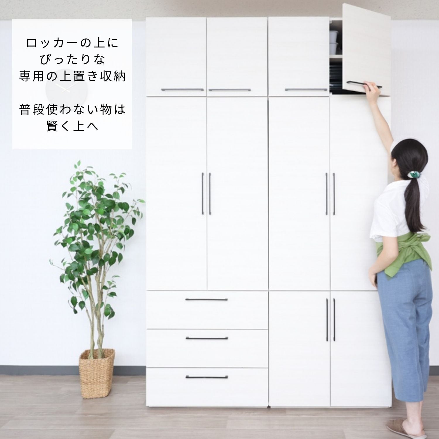 ロッカーの上にぴったりな専用の上置き収納です。