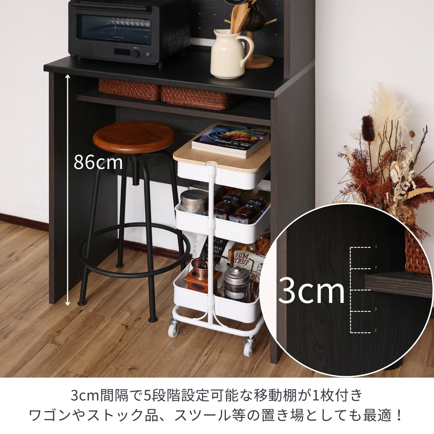 おしゃれと実用性が調和するツートンカラーのキッチンラックです。