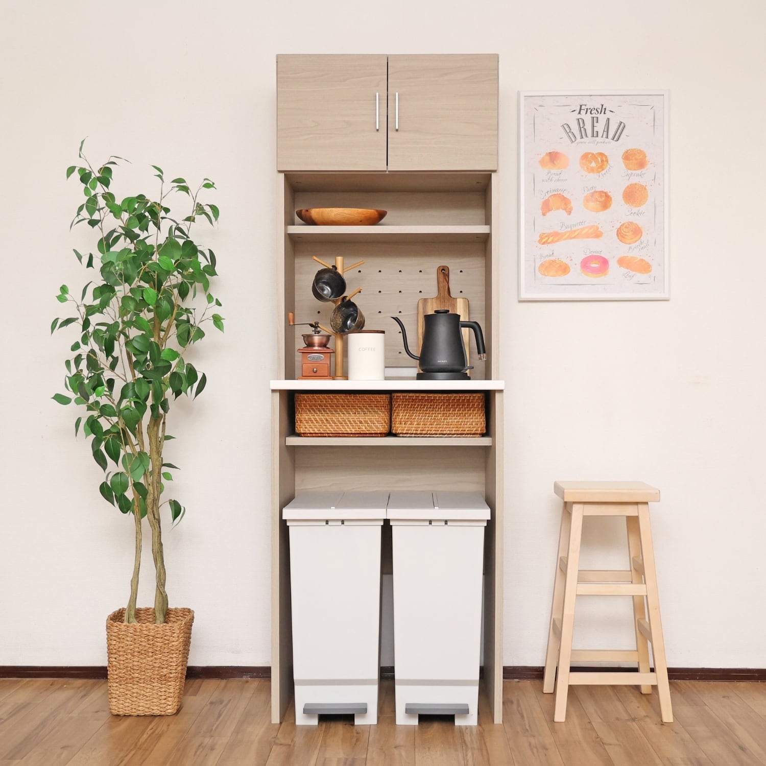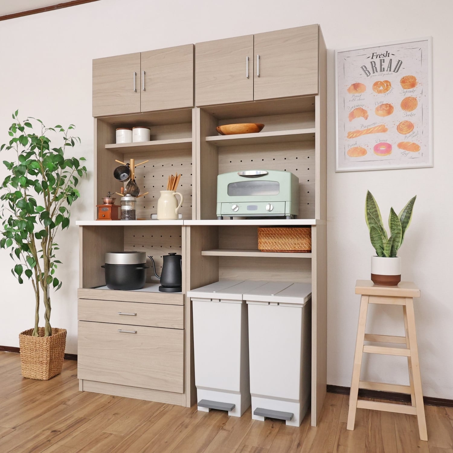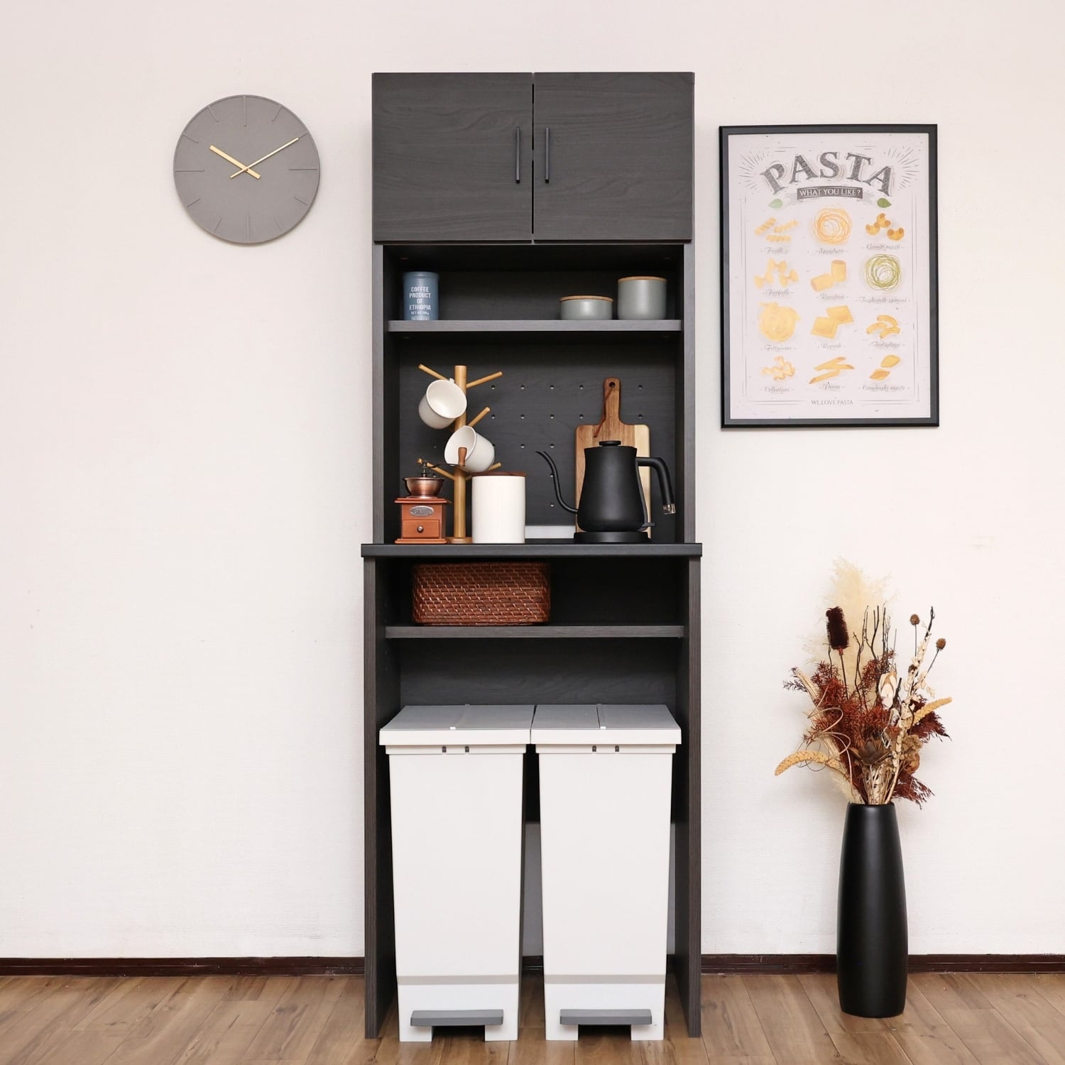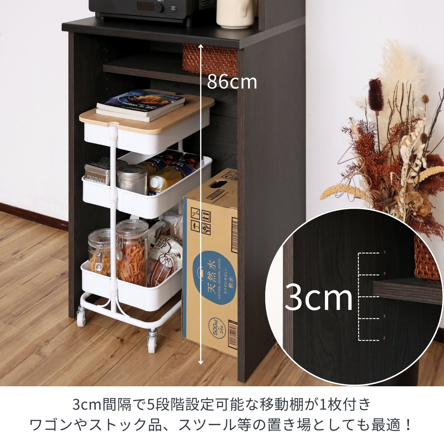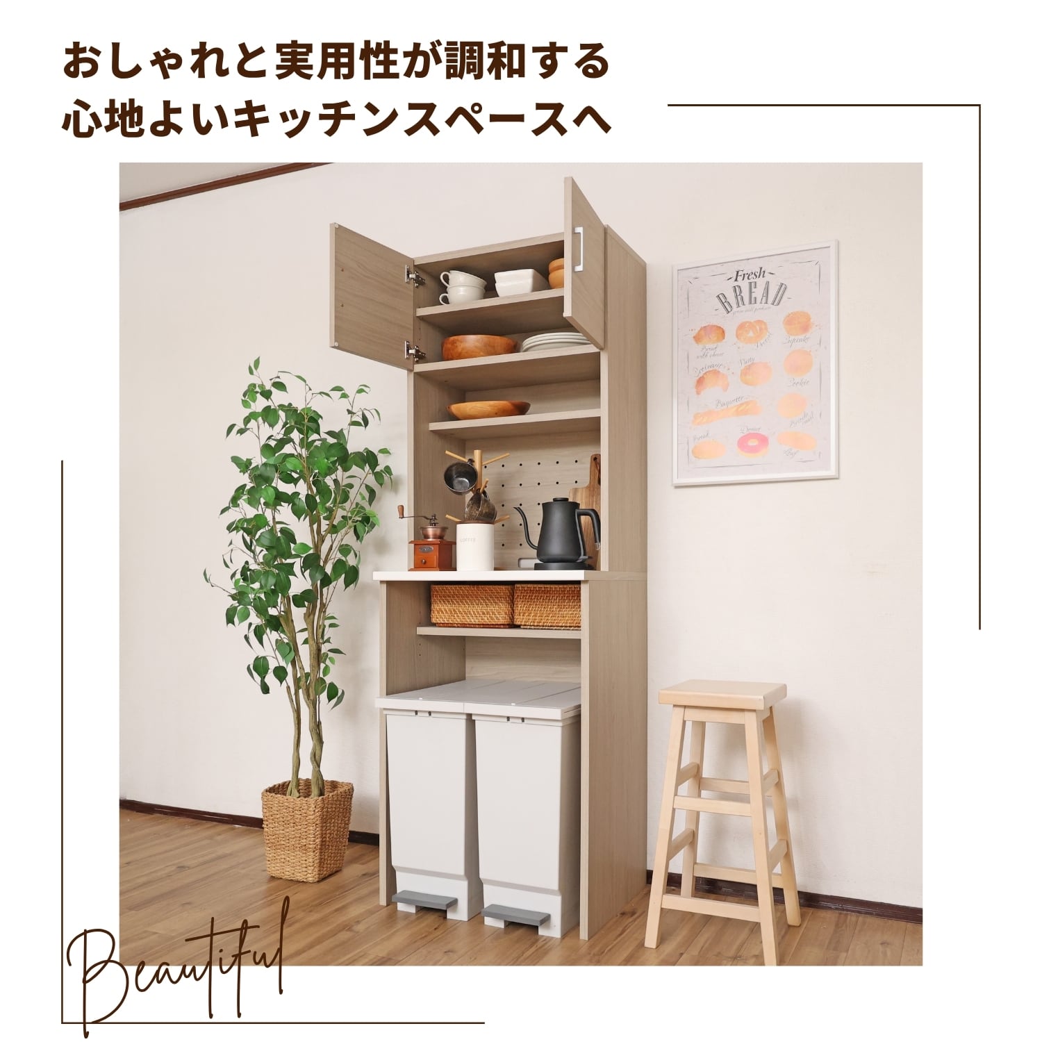 おしゃれと実用性が調和するツートンカラーのキッチンラックです。