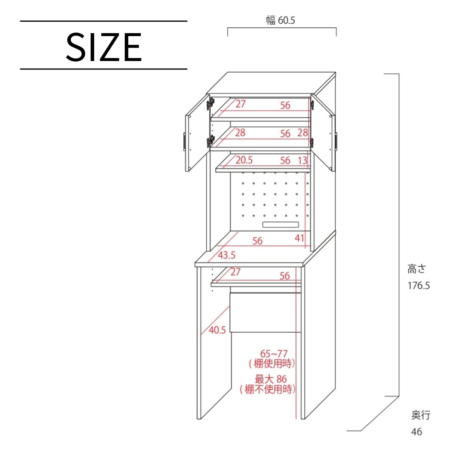外寸:幅60.5×奥行47×高さ176.5(cm)